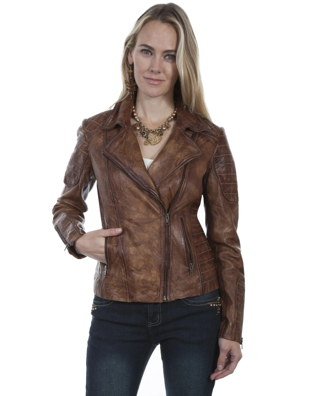 Leatherwear By Scully Women’s Brown Cross Zip Moto Leather Jacket