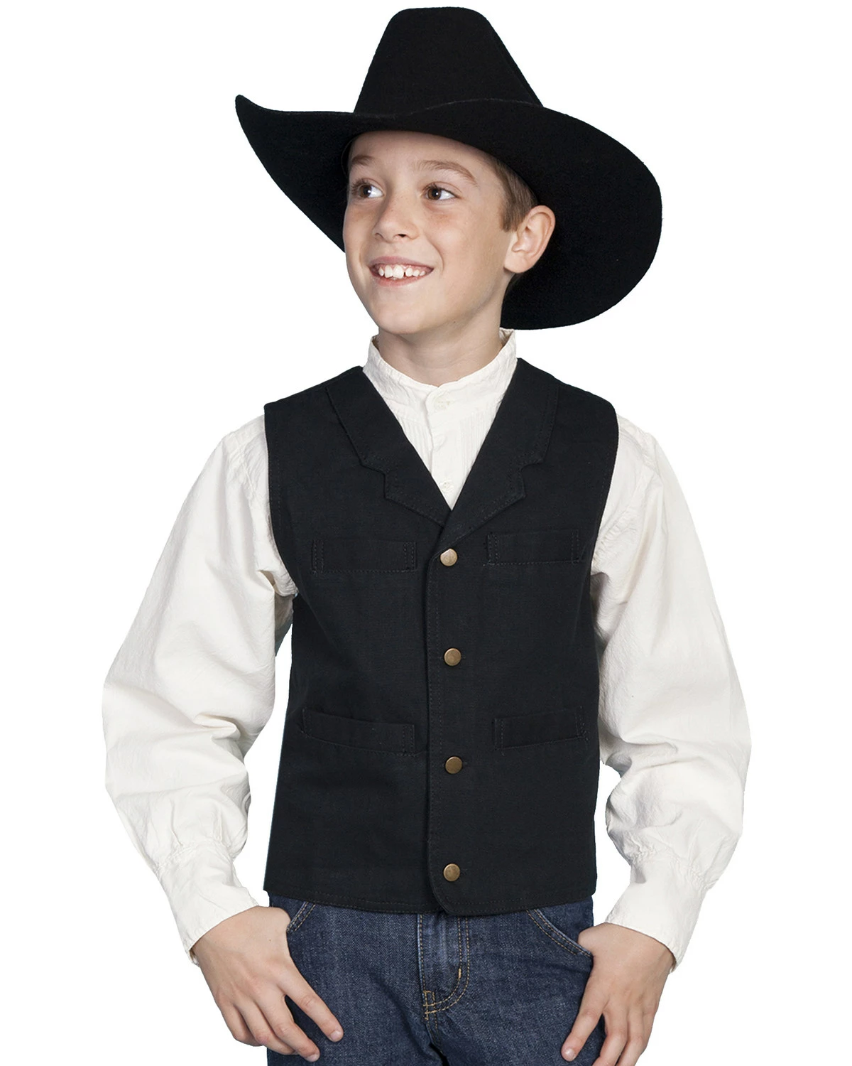 Look no further, Scully has you covered with traditional western wear for up-coming cowboys. Boys’ vest boasts traditional western style. Made of canvas material.