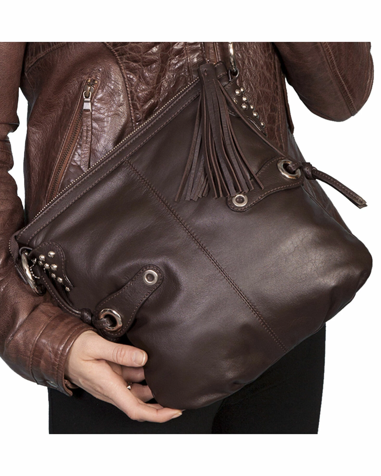 Scully designs purses with beautiful superior design. This women’s shoulder bag is made of genuine leather. Tote bag measures 11″ x 12″ x 1″. Imported.