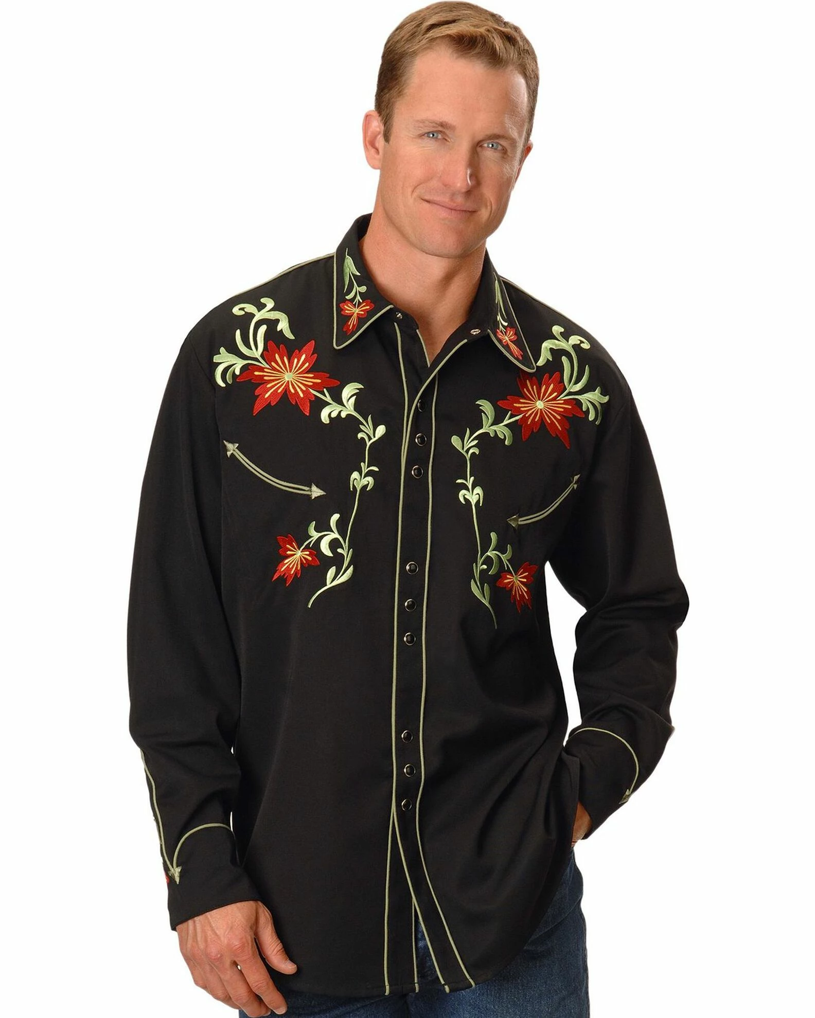 - All eyes will be on you in this floral embroidered Scully western shirt!