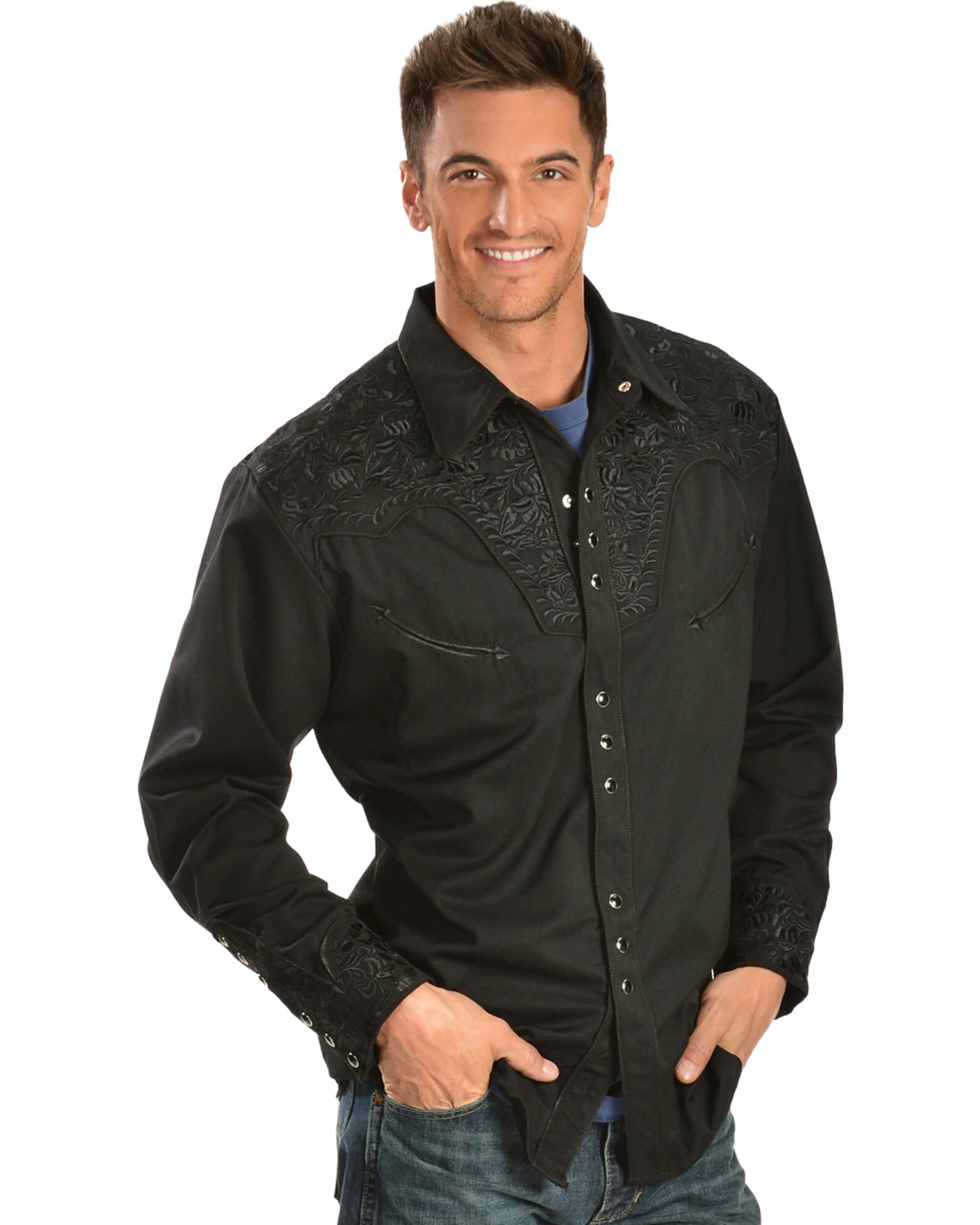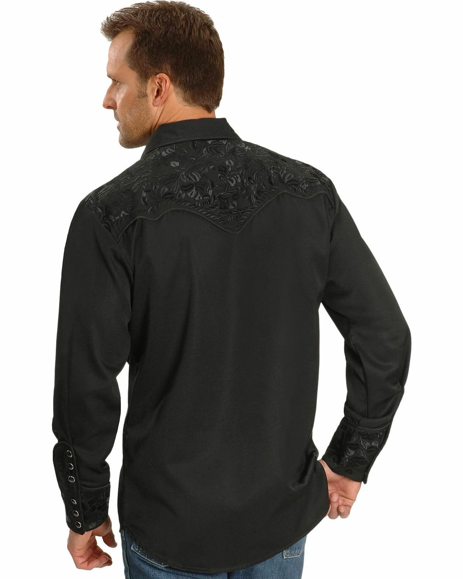 From the Scully Legends Collection comes this attractive vintage western shirt. Men’s Scully Shirt features an easy-wearing spread collar. Two retro western style smile pockets complete with piping and arrow details. Black pearlized snaps at front placket and six-snap cuffs. Western shirt is made of 65% polyester/35% rayon. Imported.