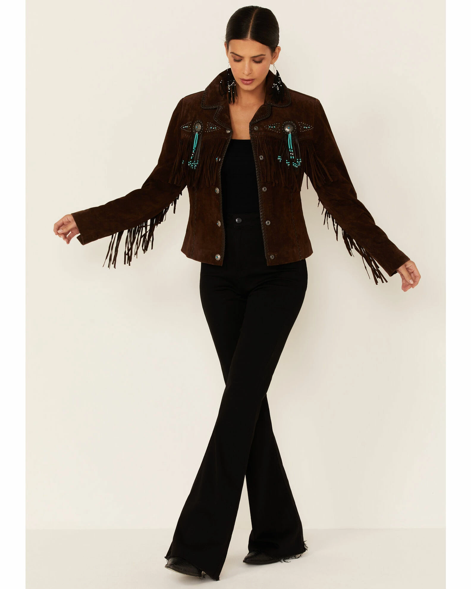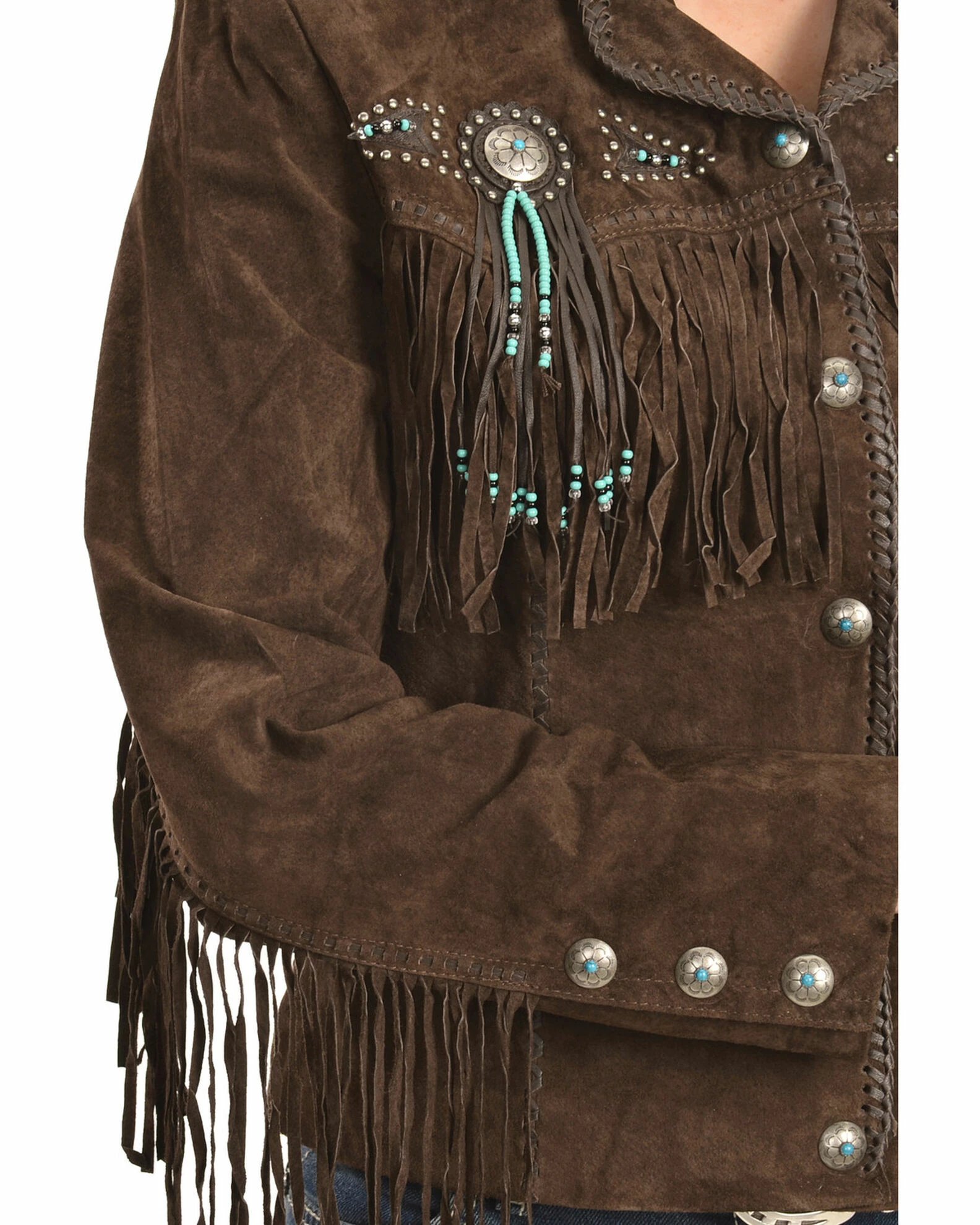 - Studded, beaded, & fringed accenting medallions