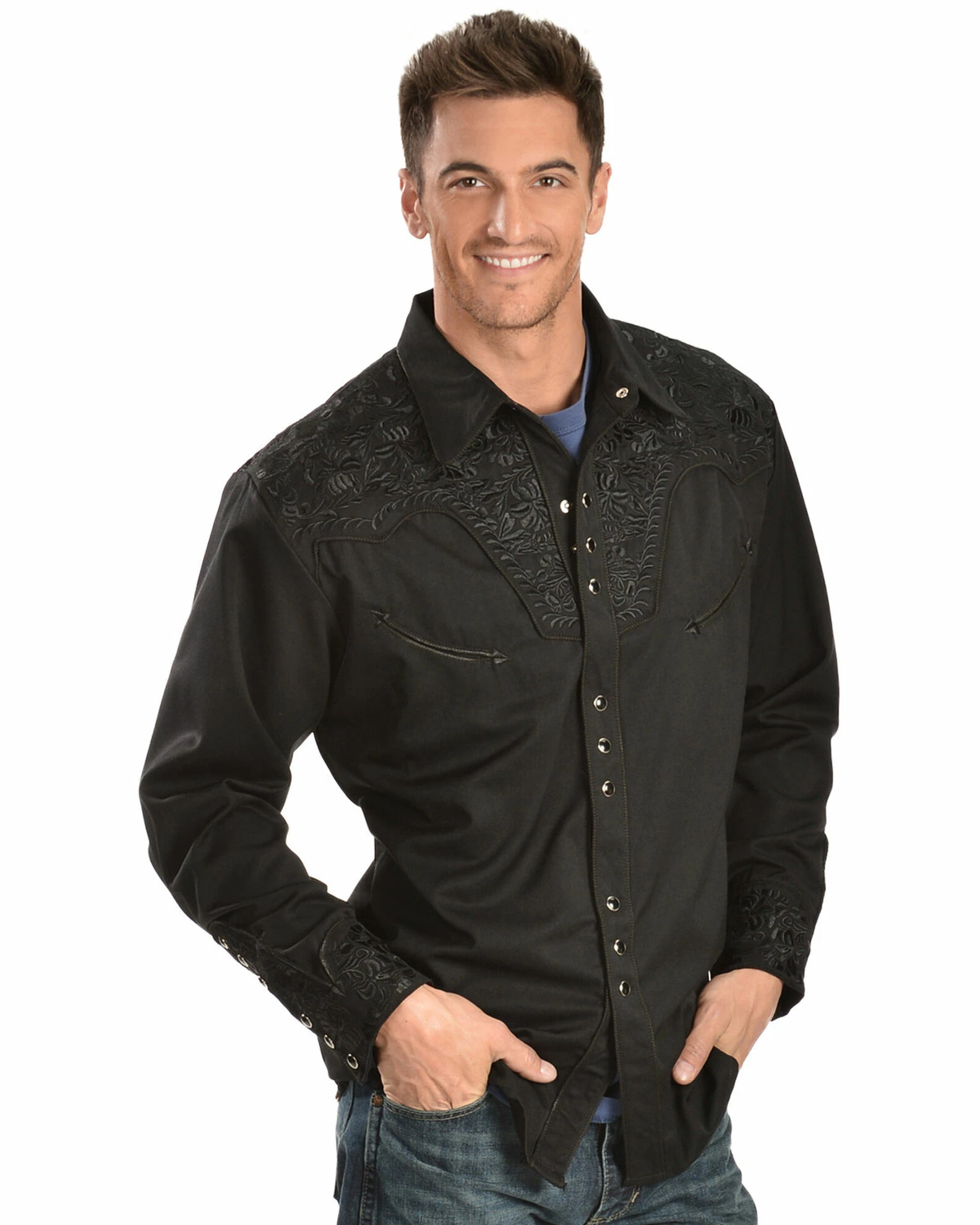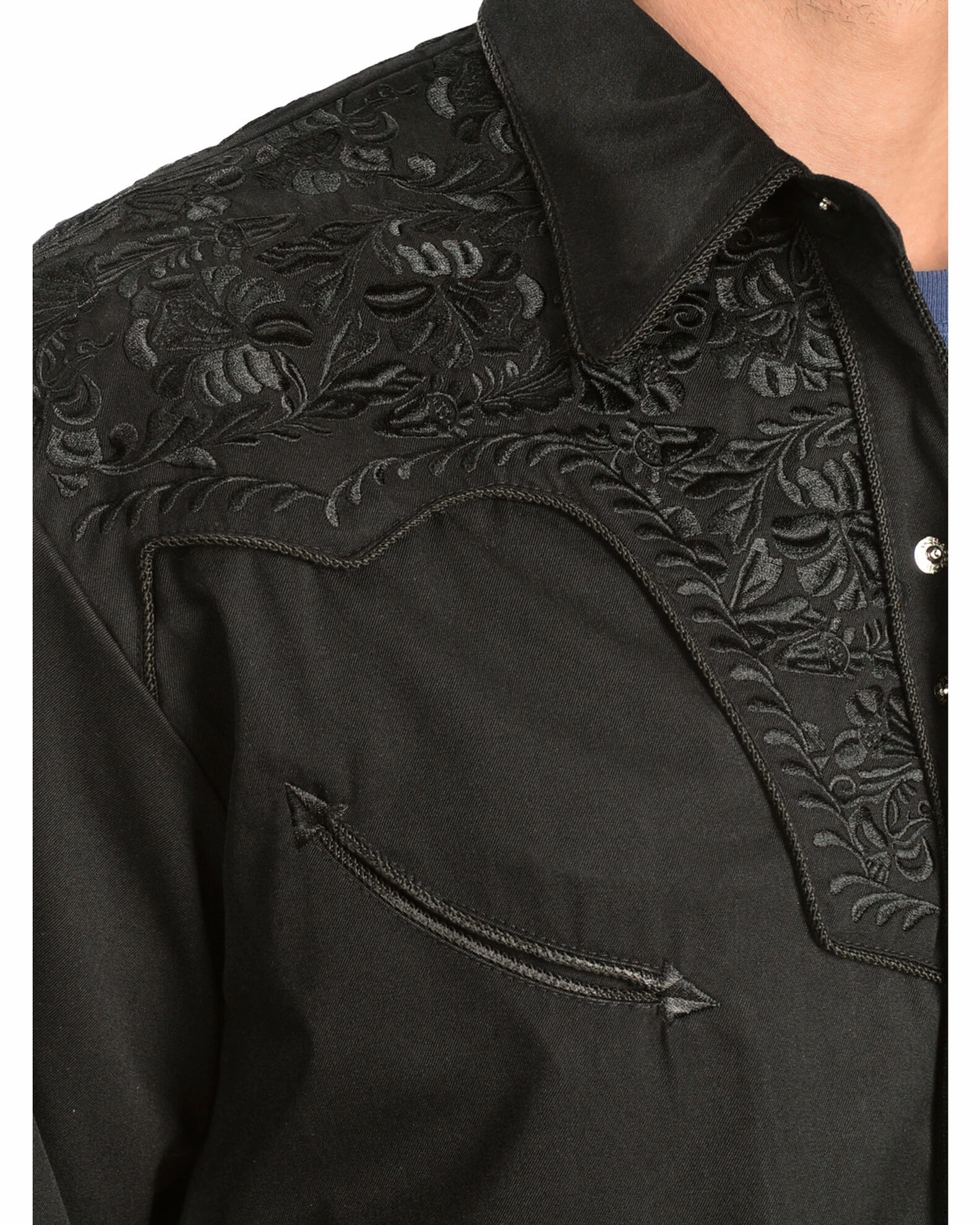 Scully Men’s Black Floral Embroidered Retro Long Sleeve Western Shirt Jet Black