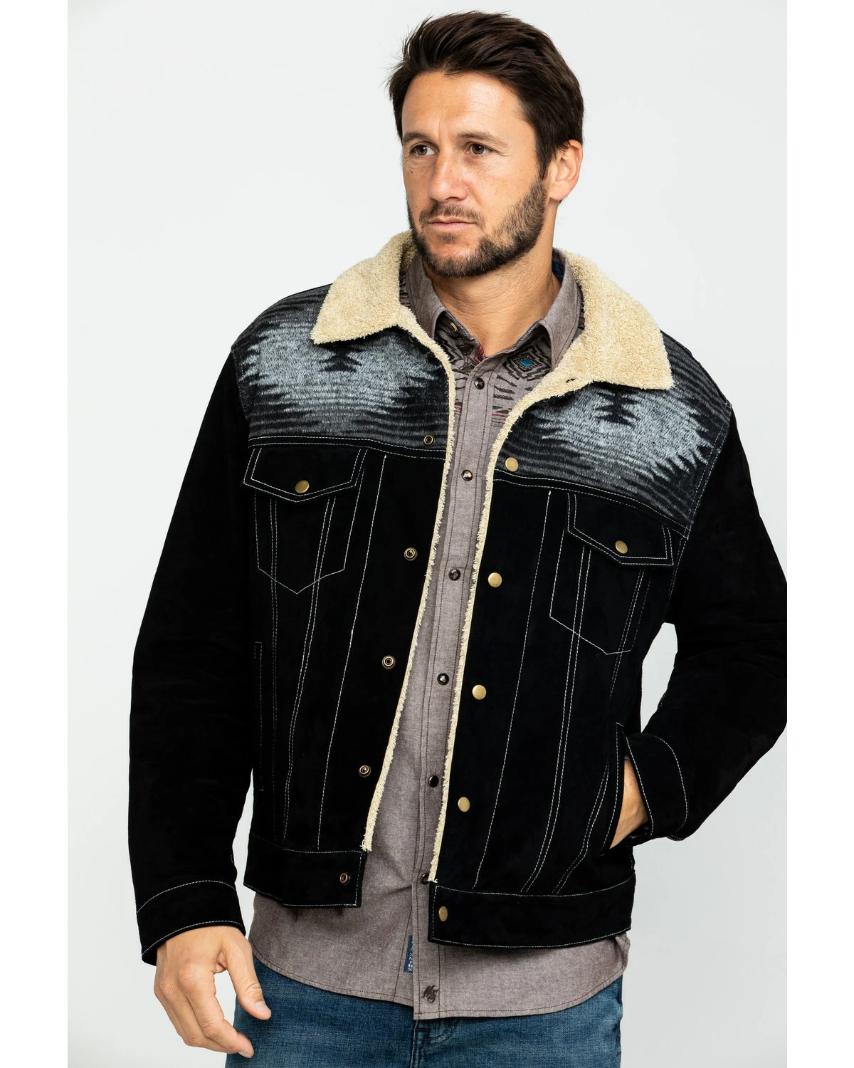 Scully Men’s Boar Suede Southwestern Yolk Jean Jacket Black