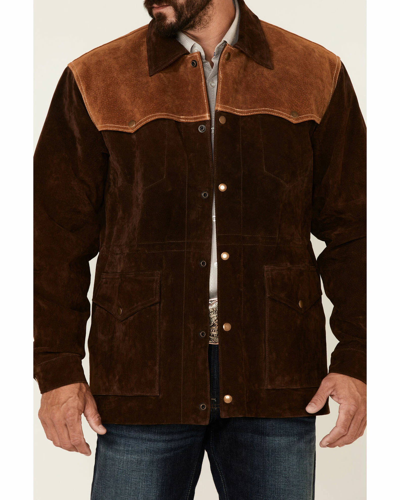 Scully Men’s Chocolate Two-Tone Suede Snap-Front Rancher Car Coat Brown