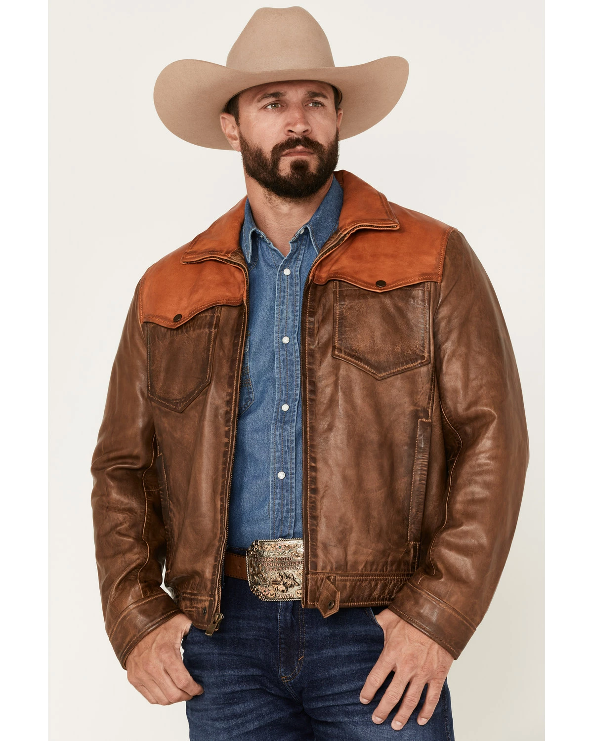 Scully Men’s Color Block Leather Jacket Tan