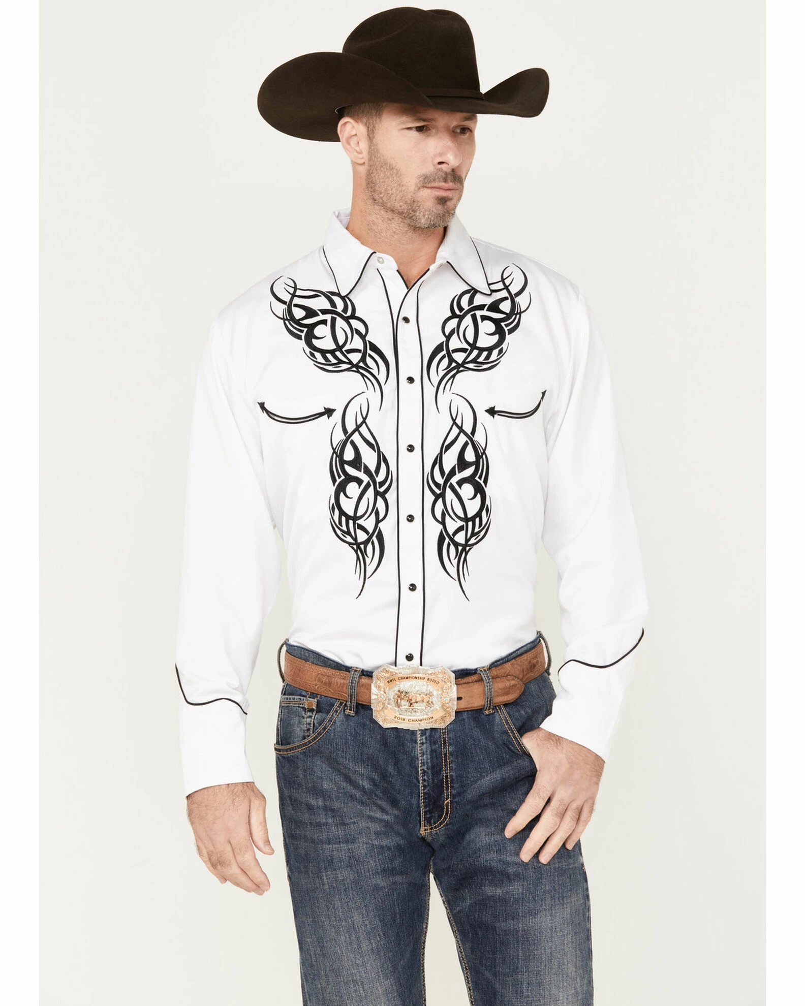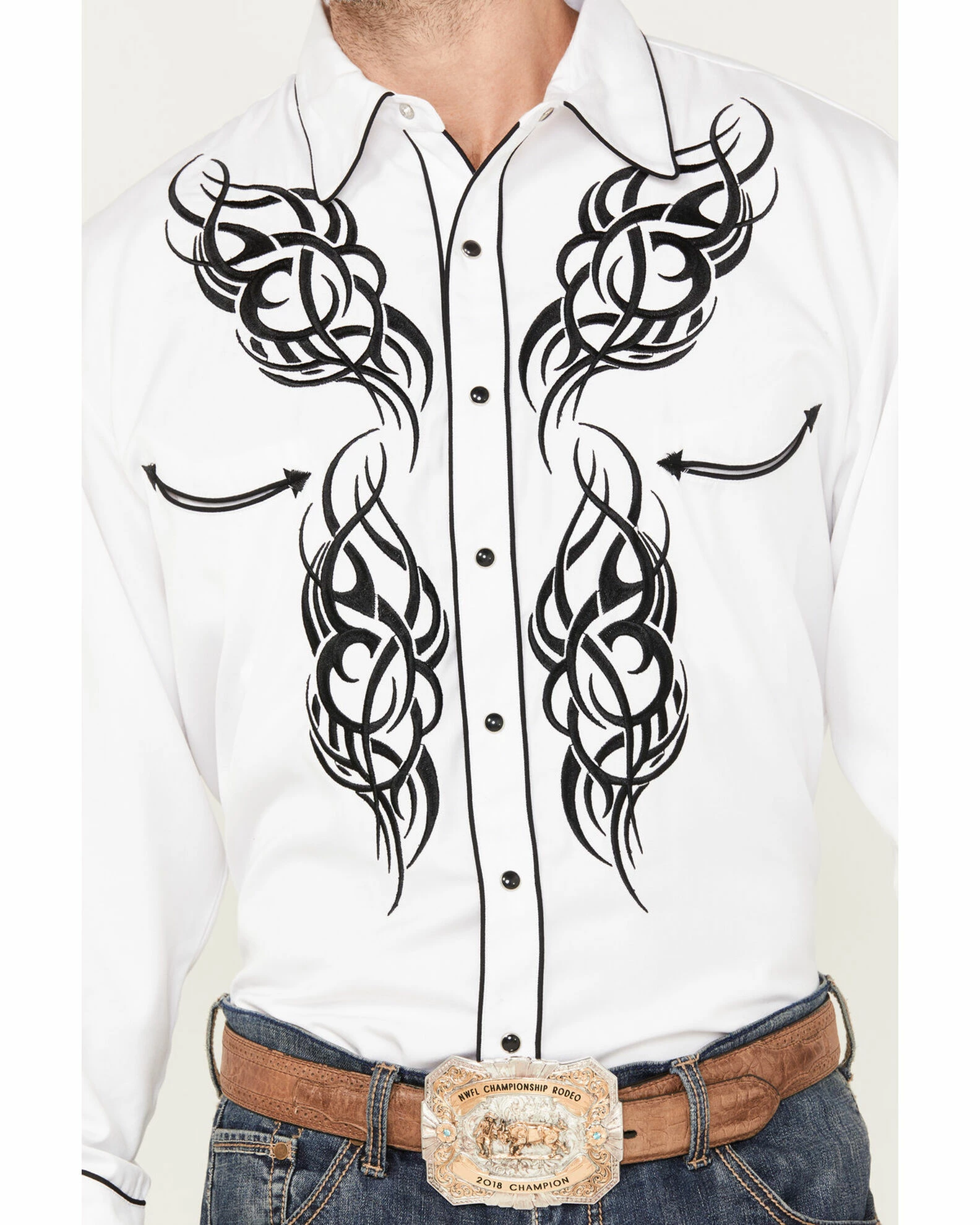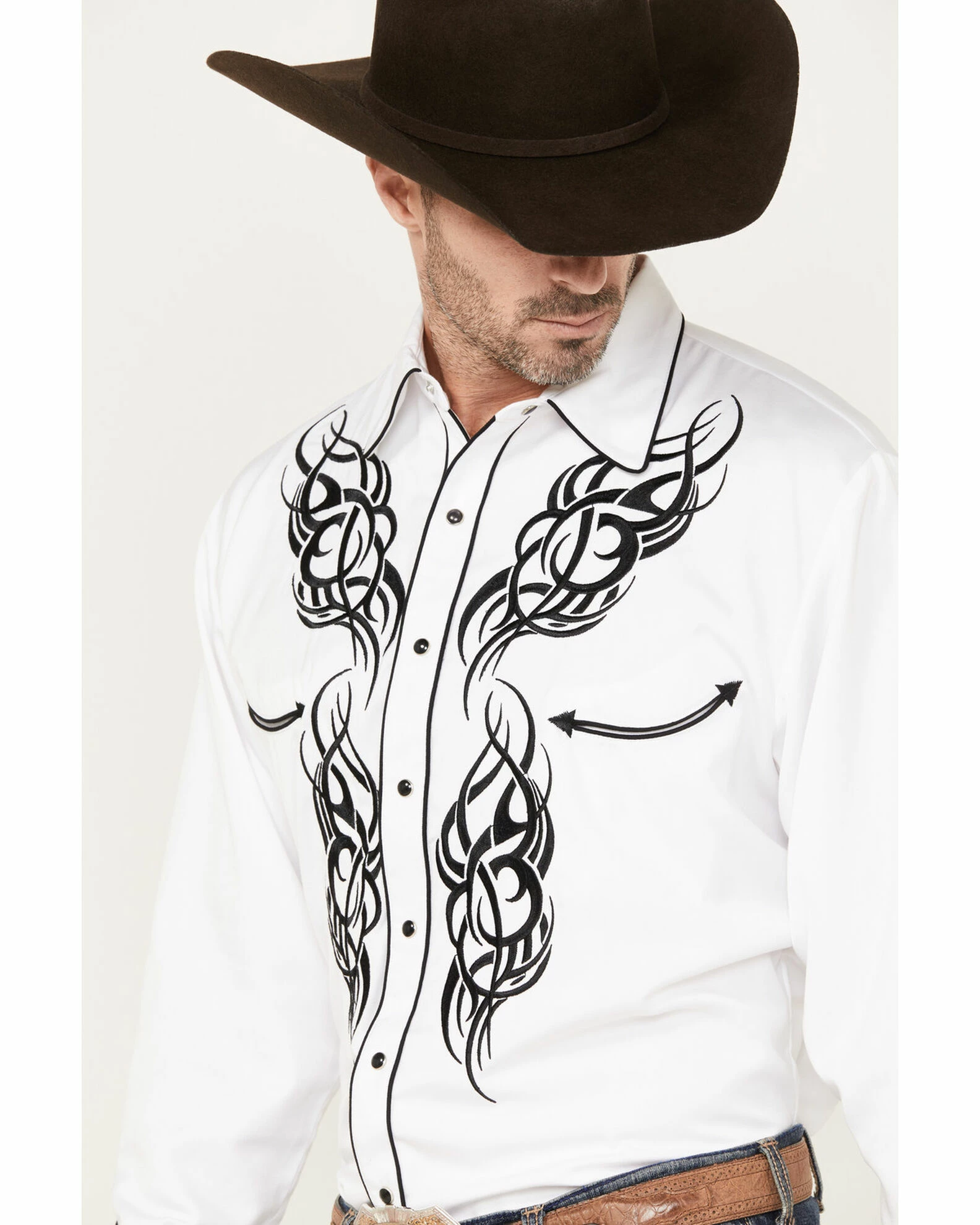 Scully Men’s Embroidered Long Sleeve Snap Western Shirt White