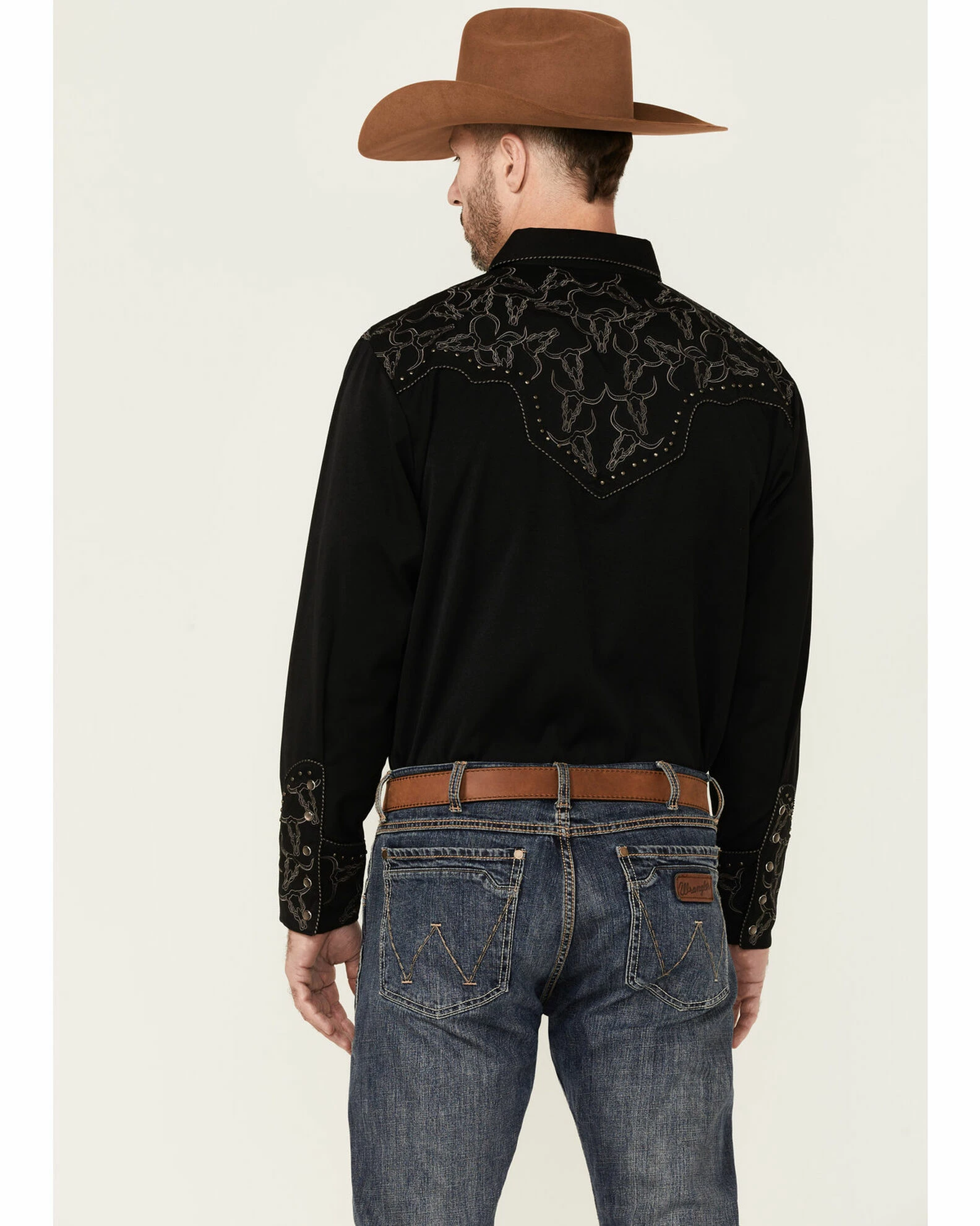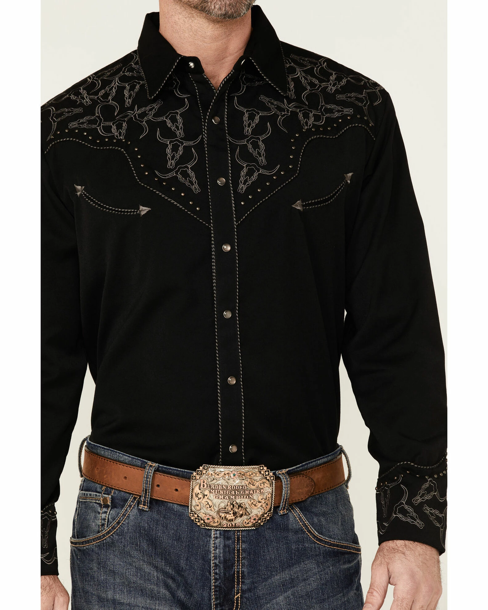 Scully Men’s Longhorn Embroidered Studded Black Long Sleeve Snap Western Shirt