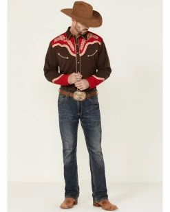 Scully Men’s Phoenix Embroidered Retro Long Sleeve Western Shirt Black
