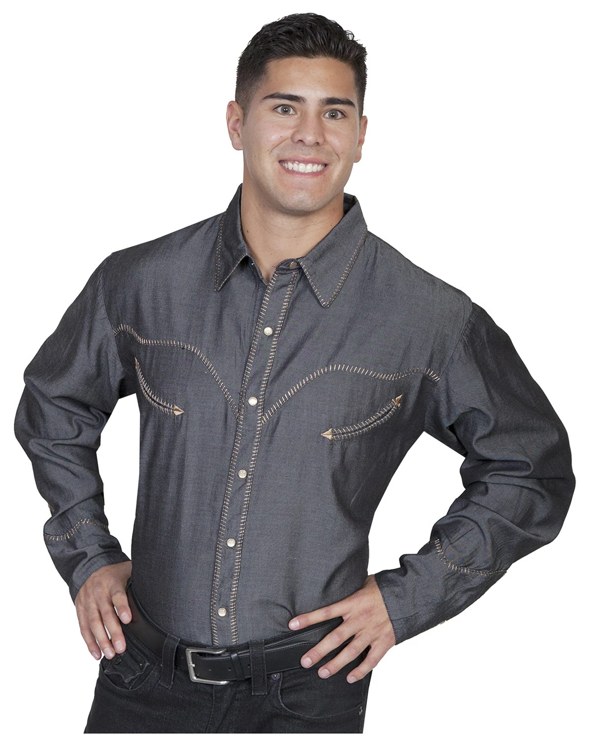 Scully Men’s Solid Whipstitch Denim Retro Long Sleeve Western Shirt Turquoise