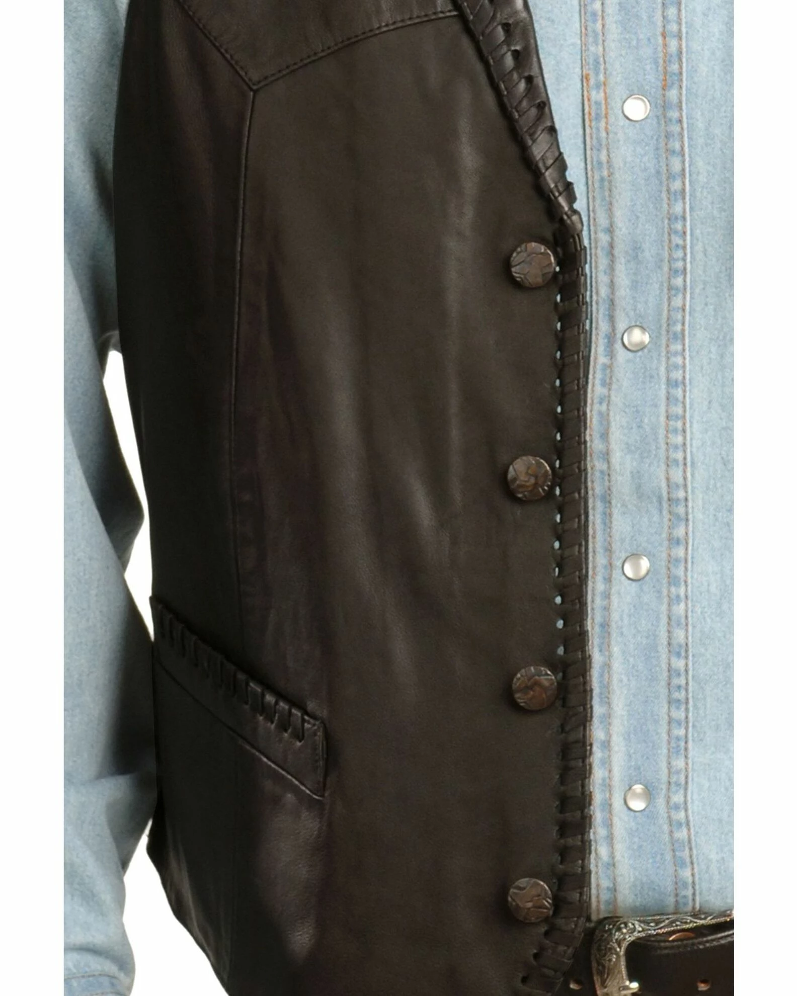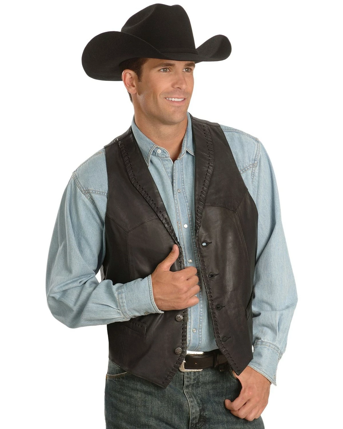 Scully has been producing the finest leather products since 1906. This Scully Men’s Whipstitch Leather Lapel Vest mixes the old west with contemporary fashion. Made out of high quality imported leather and acetate lined, this vest has a snap up closure with whipstitch treatments, giving it an authentic Western feel. The two front pockets and one inner pocket make this vest functional in addition to its stylish features. Put this vest on over your favorite dress shirt and you’ll be the fanciest cowboy on the ranch.