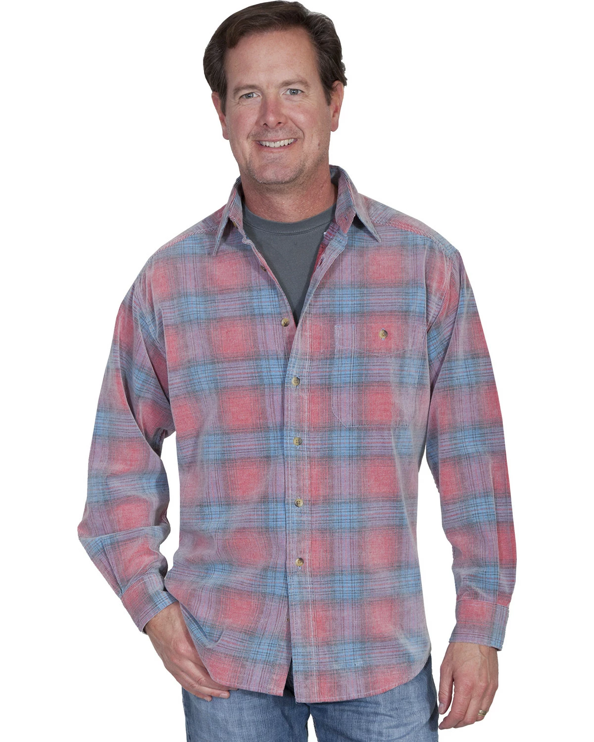 Scully Men’s Yard Dye Corduroy Plaid Long Sleeve Western Shirt Multi