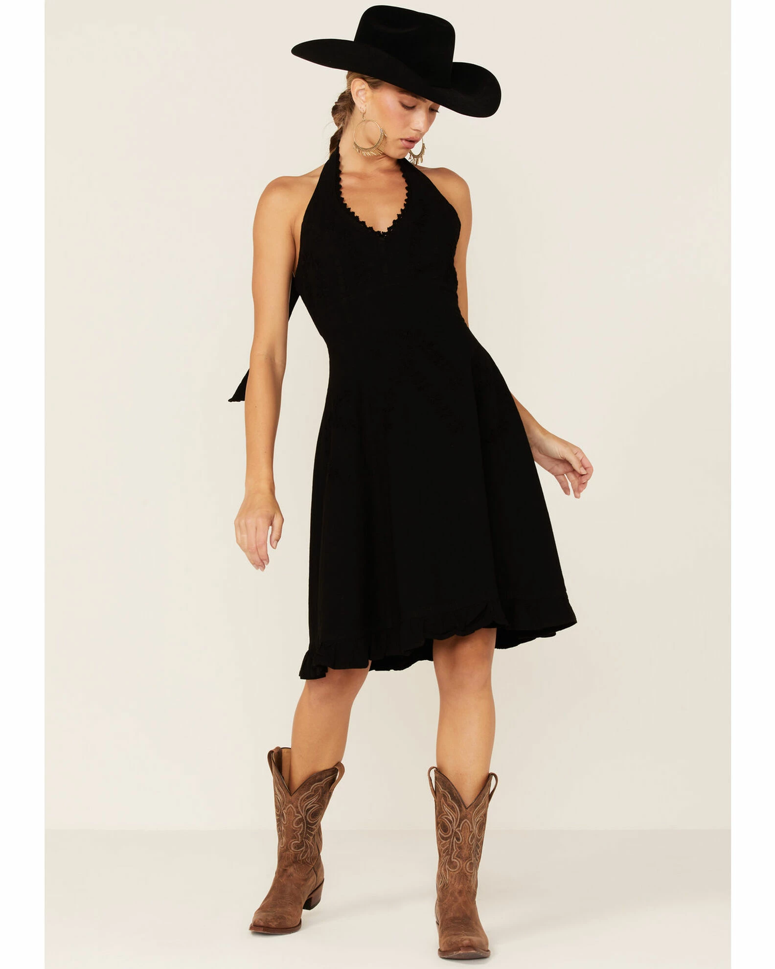 Scully dresses women with exquisite western taste and fashion-forward details. This women’s dress features halter top styling. Imported. Sizes: XS(0-2), S(4-6), M(8-10), L(12-14), XL(16-18), 2XL(20).