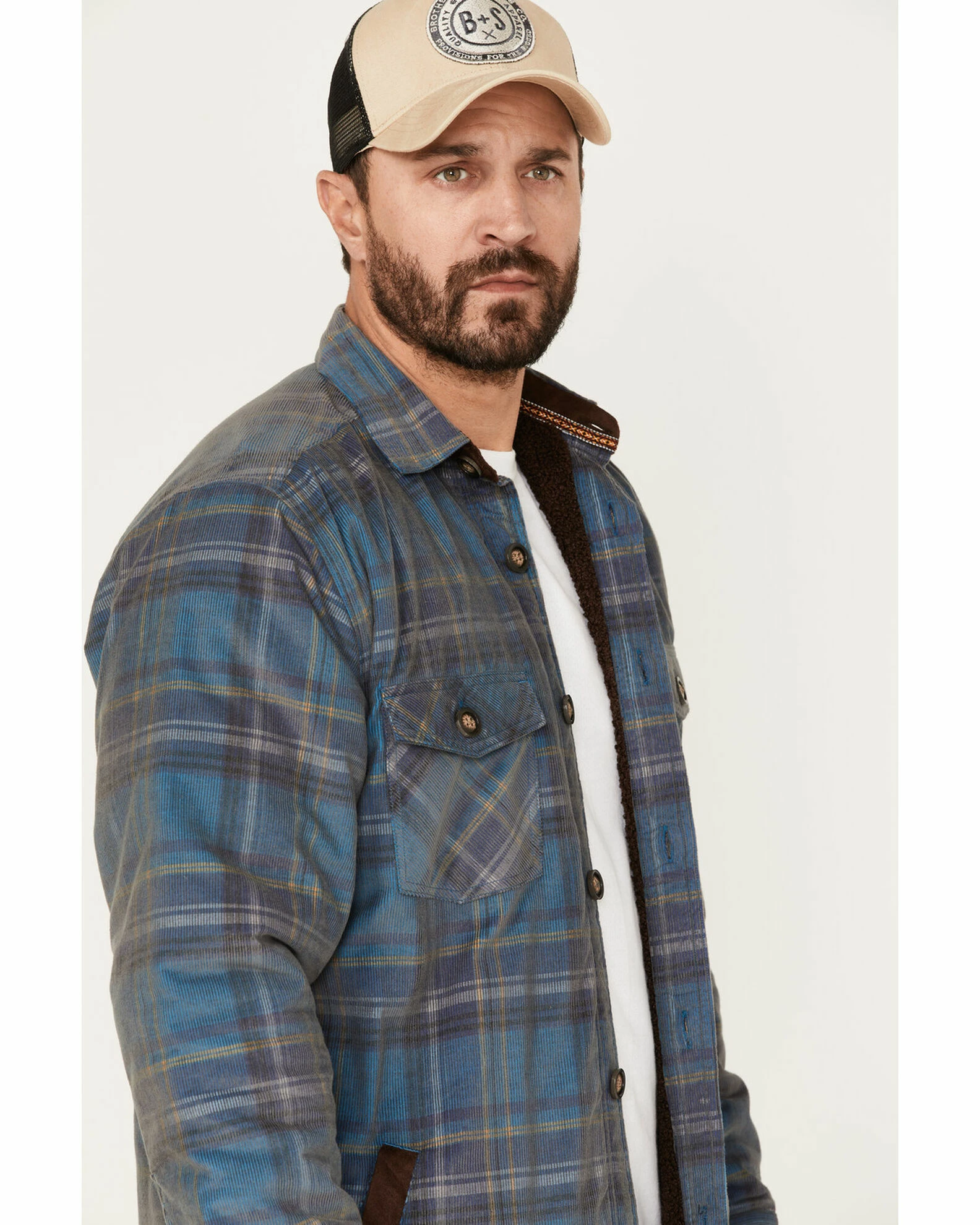 Scully Sculy Men’s Plaid Print Corduroy Sherpa Lined Button Jacket Navy
