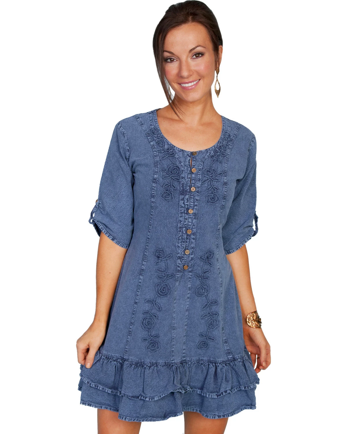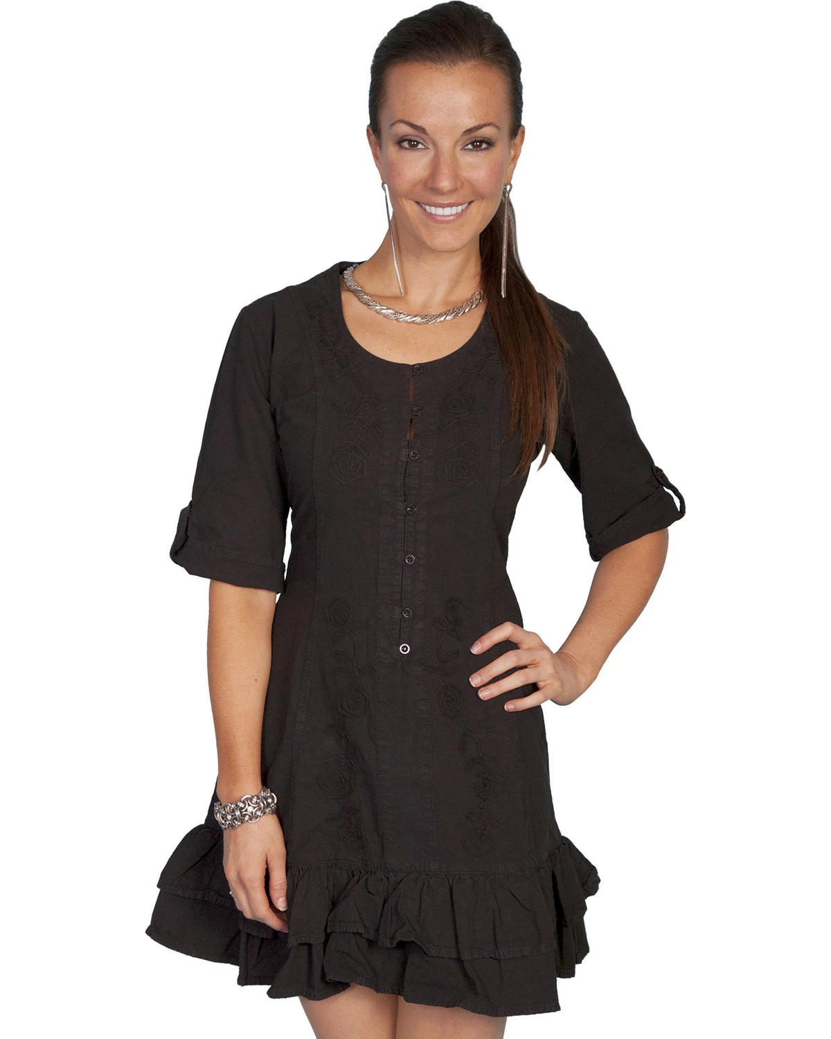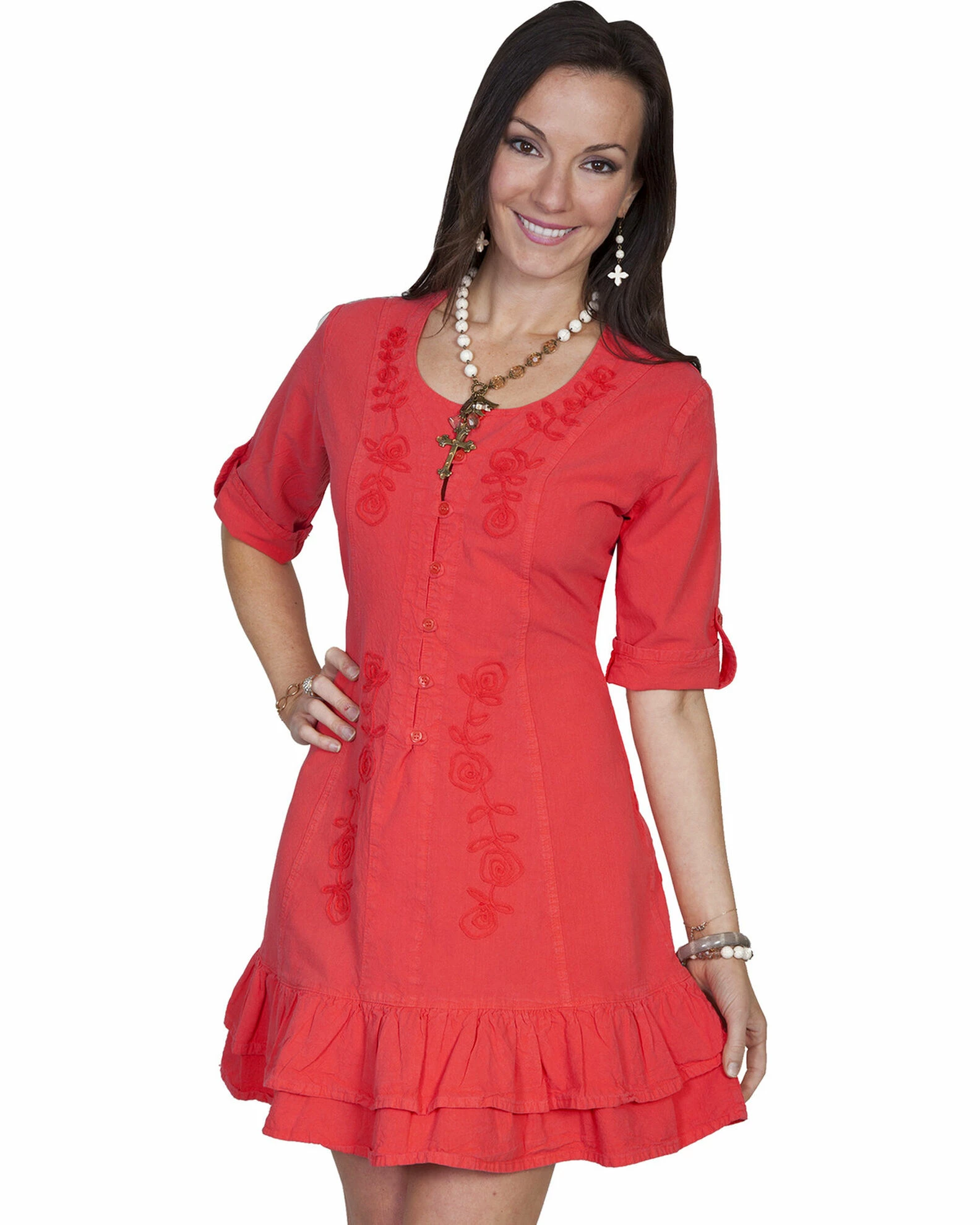 Cowgirls adore our Scully dresses! This fashion dress offers a sexy scoop neckline. Dress is made of 100% Peruvian cotton. Imported. S(2-4), M(6-8), L(10-12), XL(14-16), 2XL(18).
