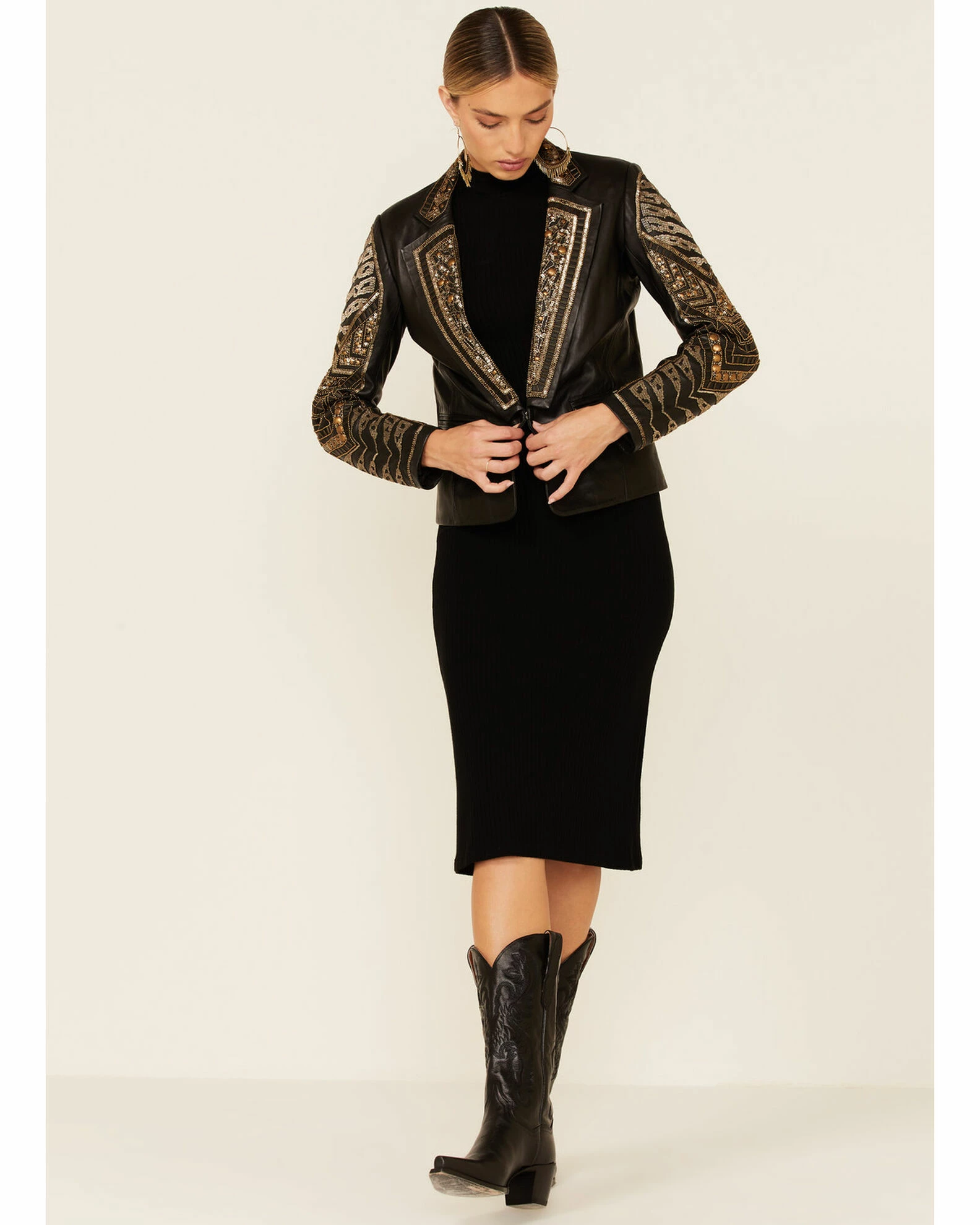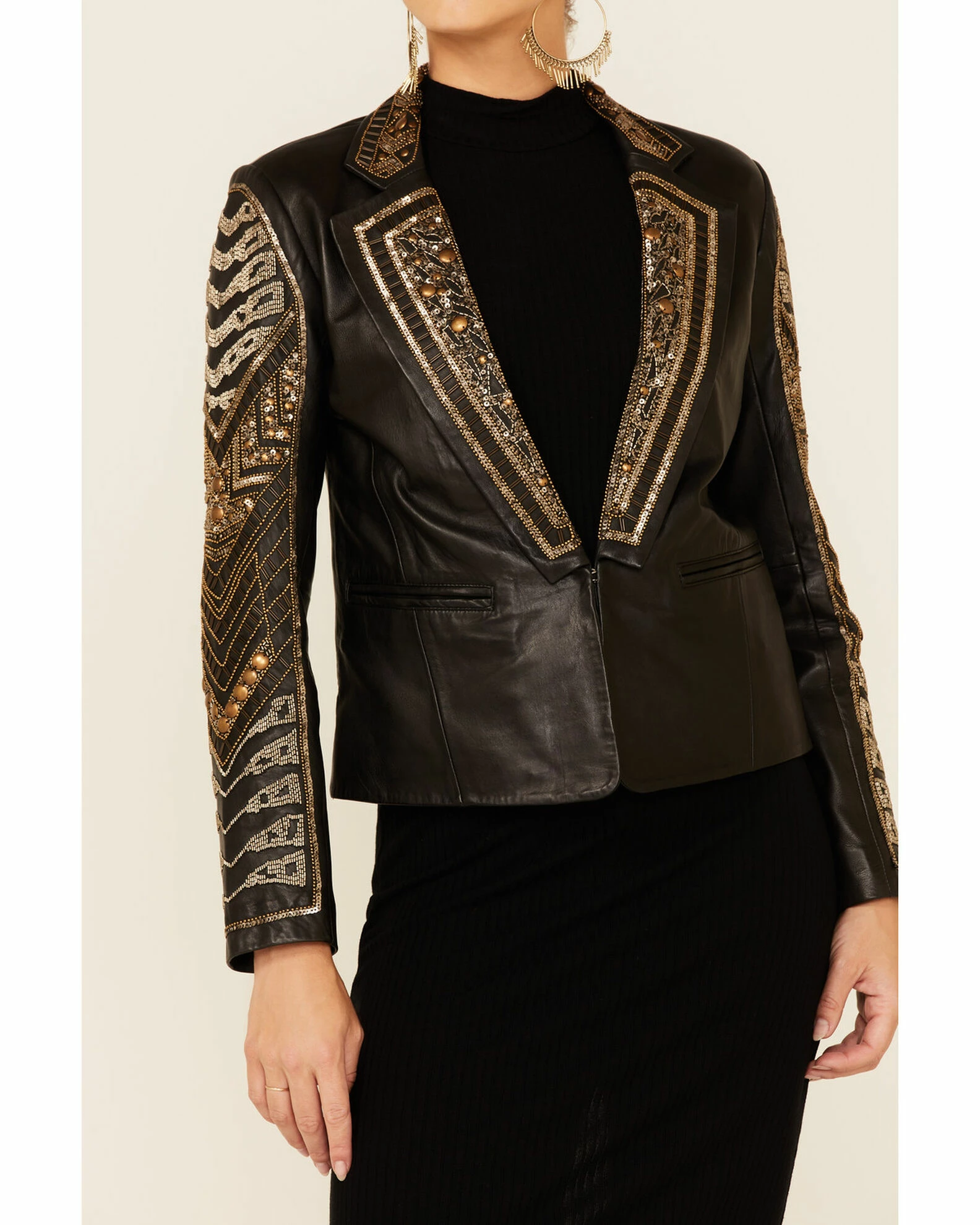 Scully Women’s Black Lamb Studded Hook-Front Leather Blazer