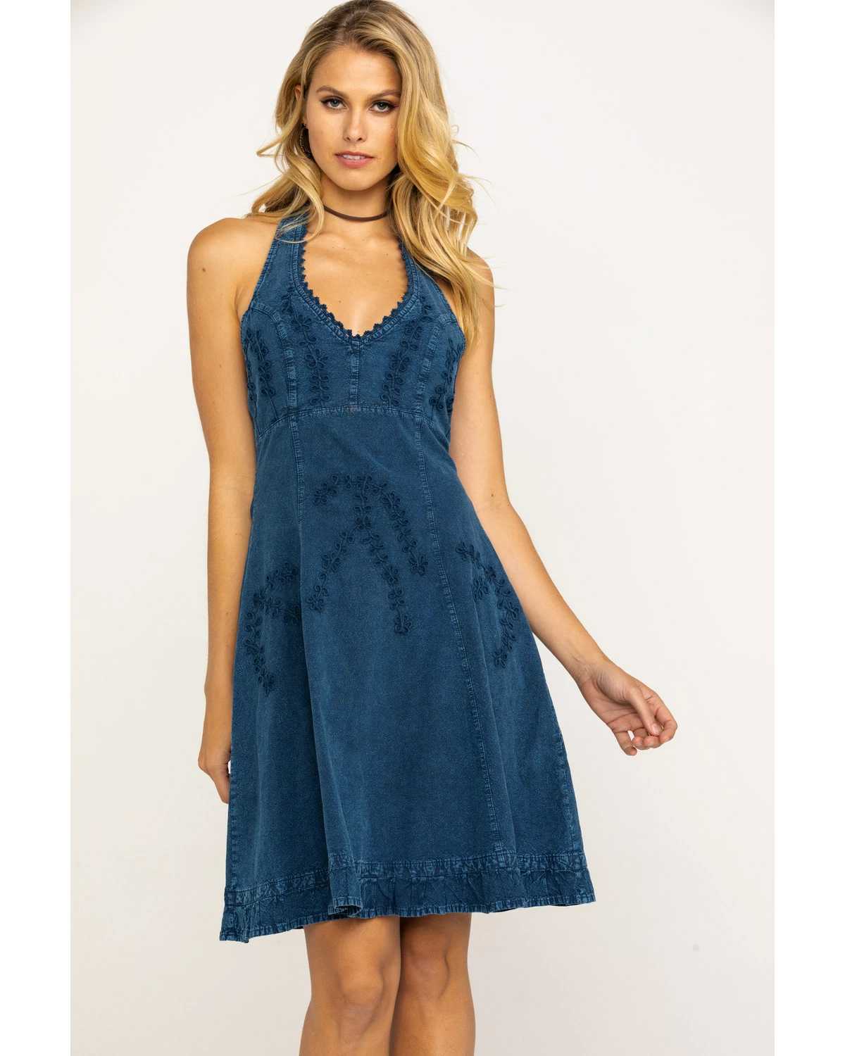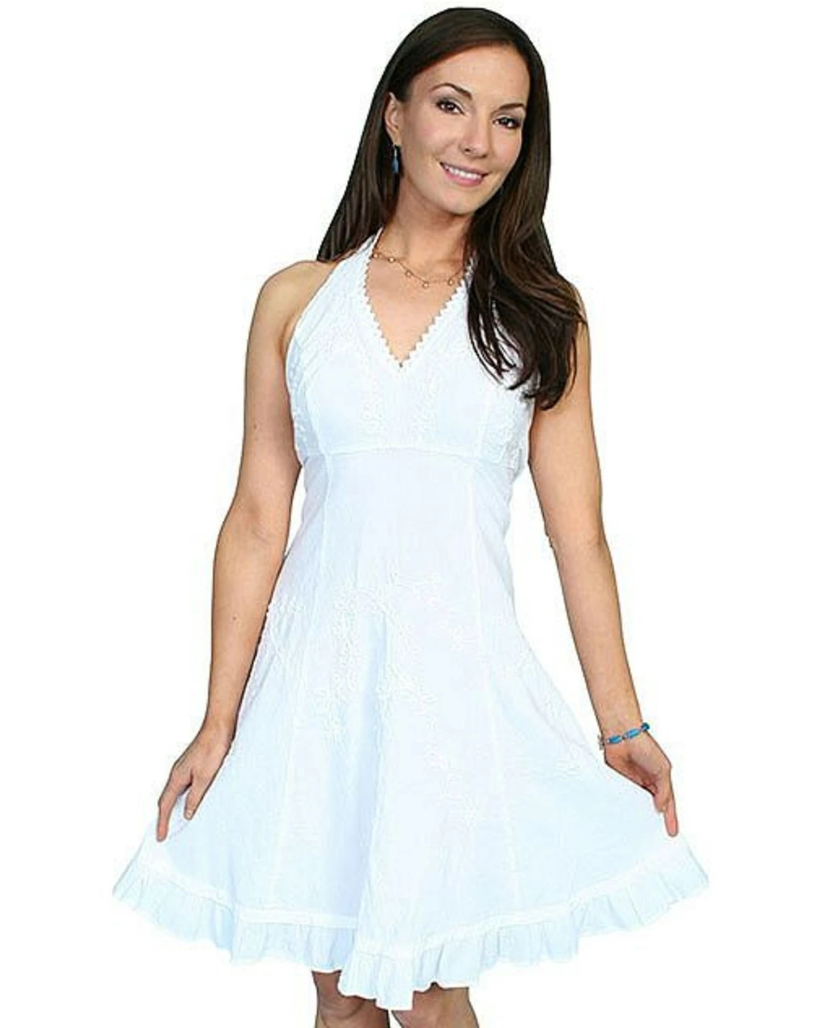 You will be a pretty senorita in this Cantina Halter dress by Scully. Paired with boots for a night out on the town or sandals for a day of fun in the sun. The embroidered accents, ruffled hem, and flowing skirt will have you feeling like a lady. The tie straps and gathered back allow for an adjustable and comfortable fit. Easy to care for, machine wash cold and tumble dry on low.