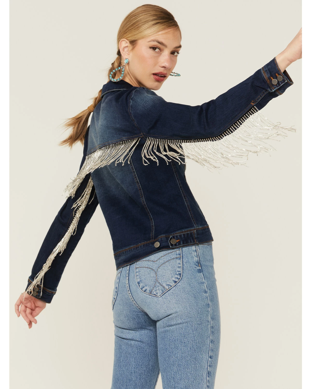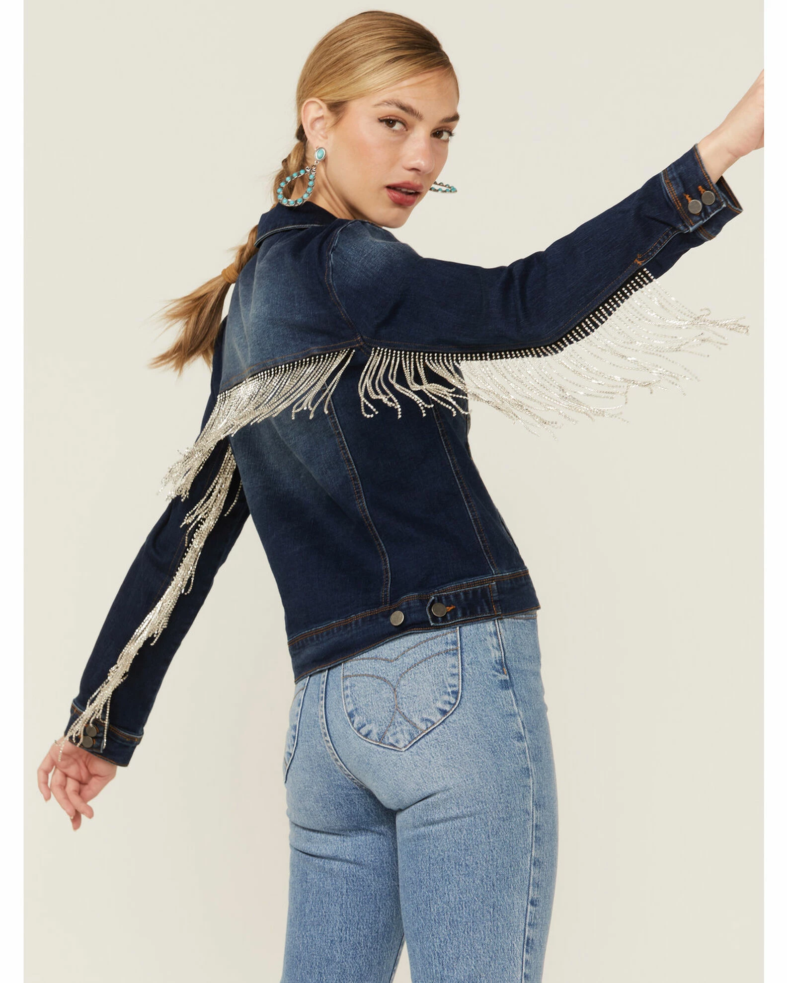 Scully Women’s Rhinestone Fringe Denim Jacket Blue