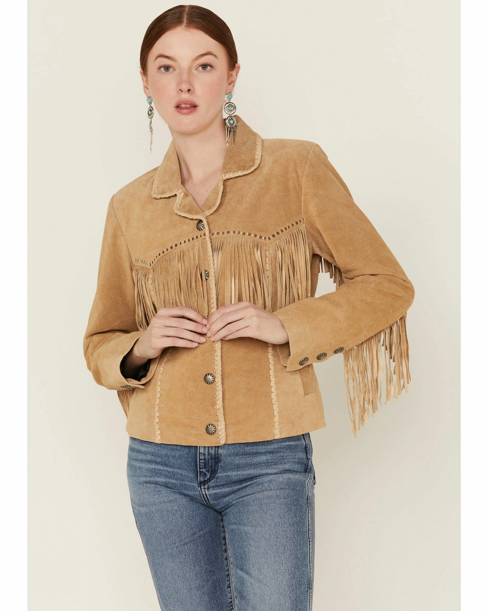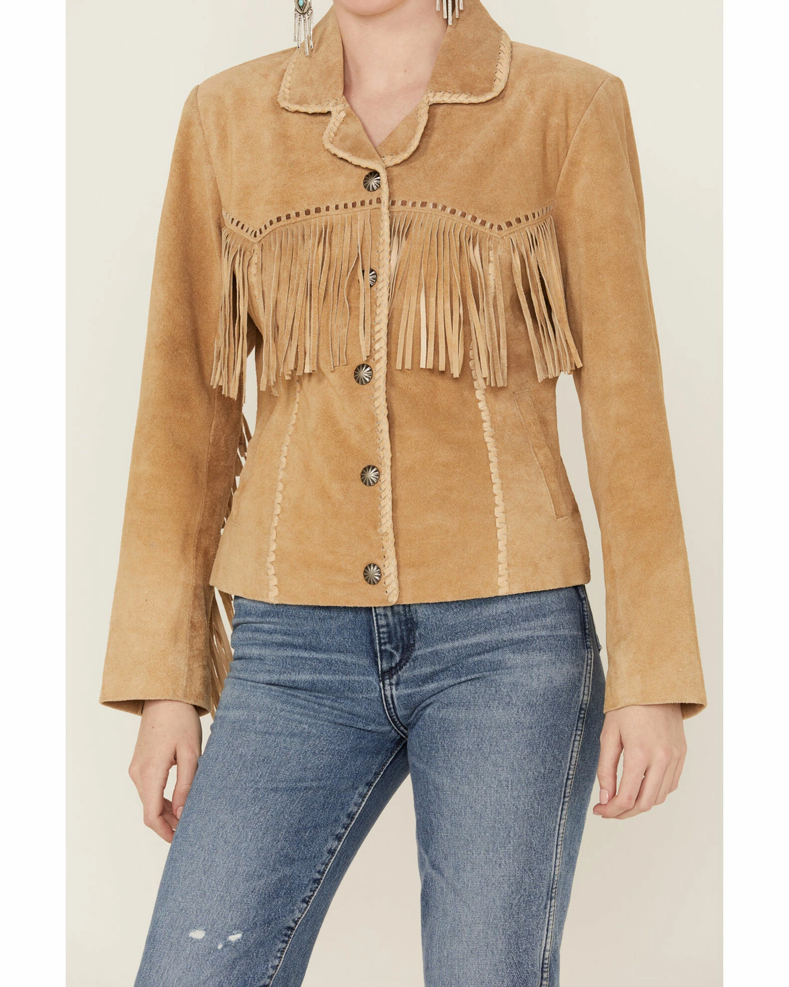 Scully Women’s Suede Snap Fringe Jacket Tan